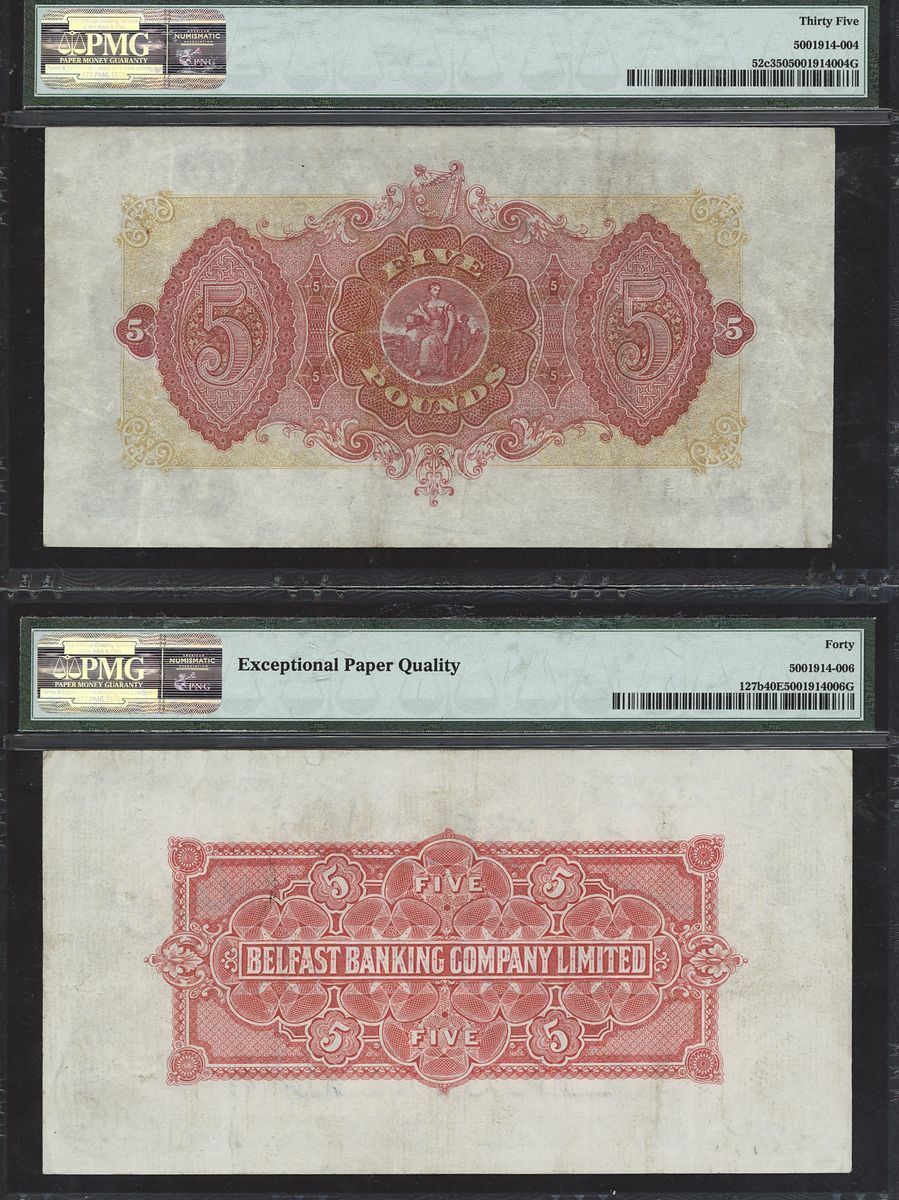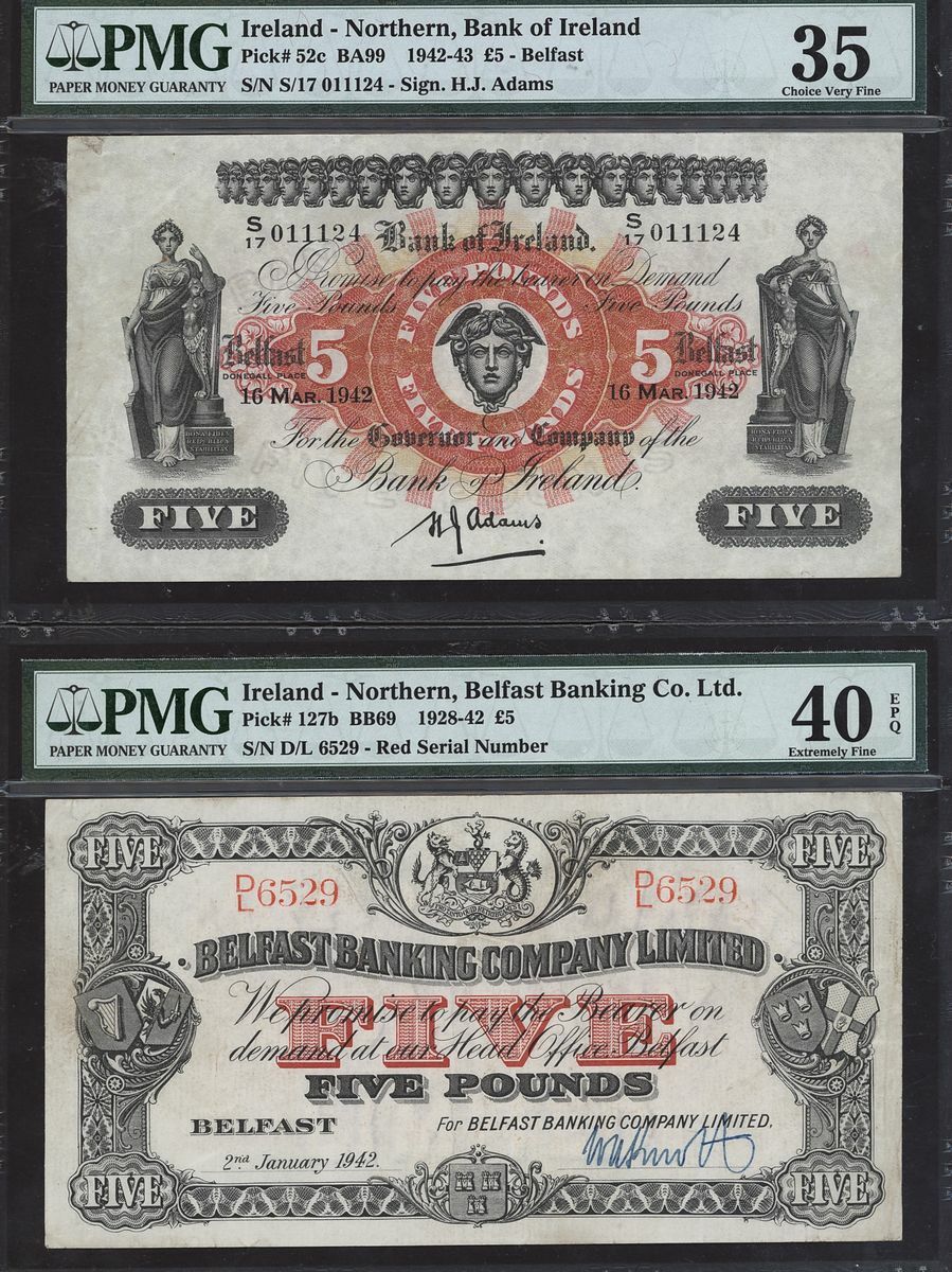 (PMI BA99, BB69), Belfast Banking in PMG holder 40EPQ Extremely Fine, Bank of Ireland 35 Choice Very Fine