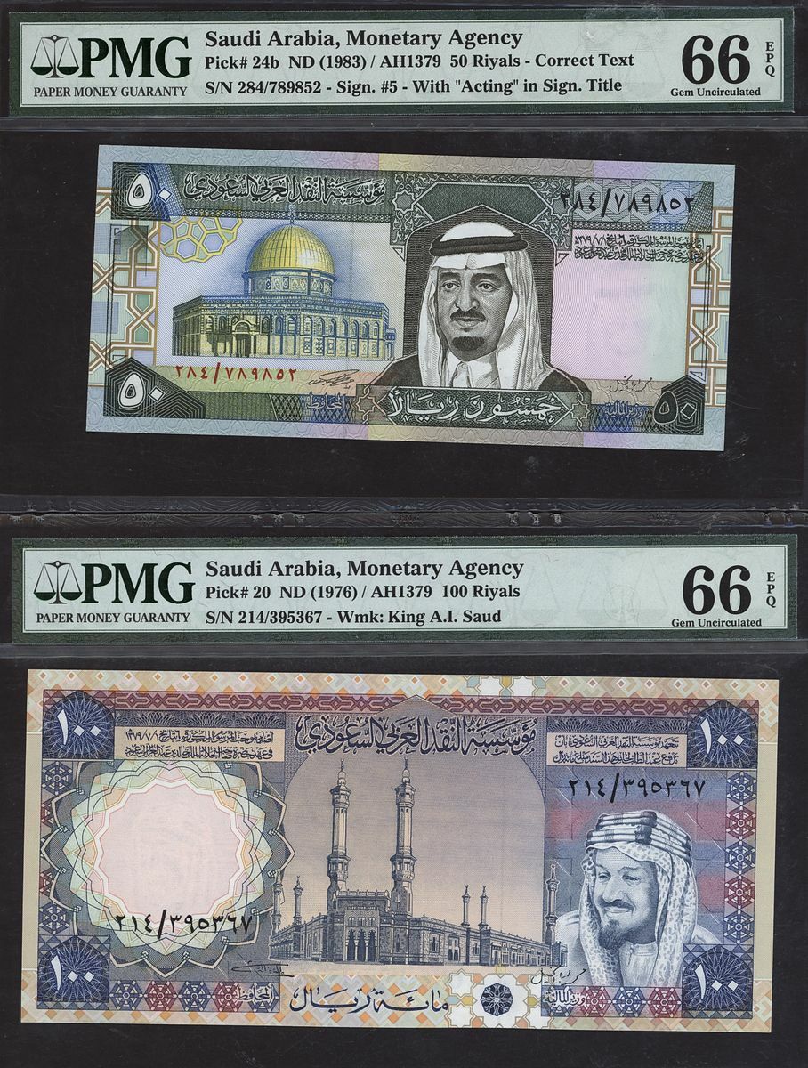 (x) Saudi Arabia, Monetary Agency, group of 4 banknotes, 100 Riyals, ND (1976), serial number 214/395367,