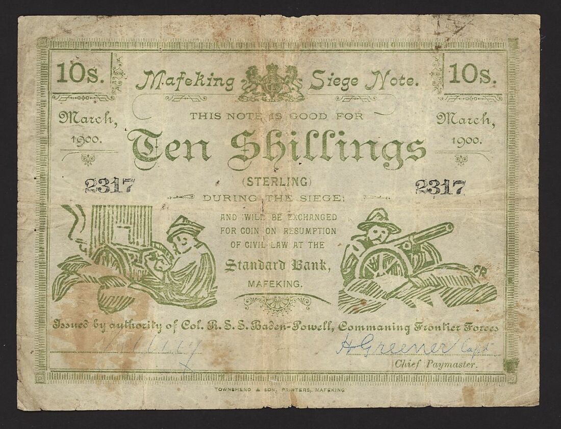 Mafeking Siege / Boer War, South Africa, 10 shillings, March 1900, serial number 2317, (Pick S654a), very good