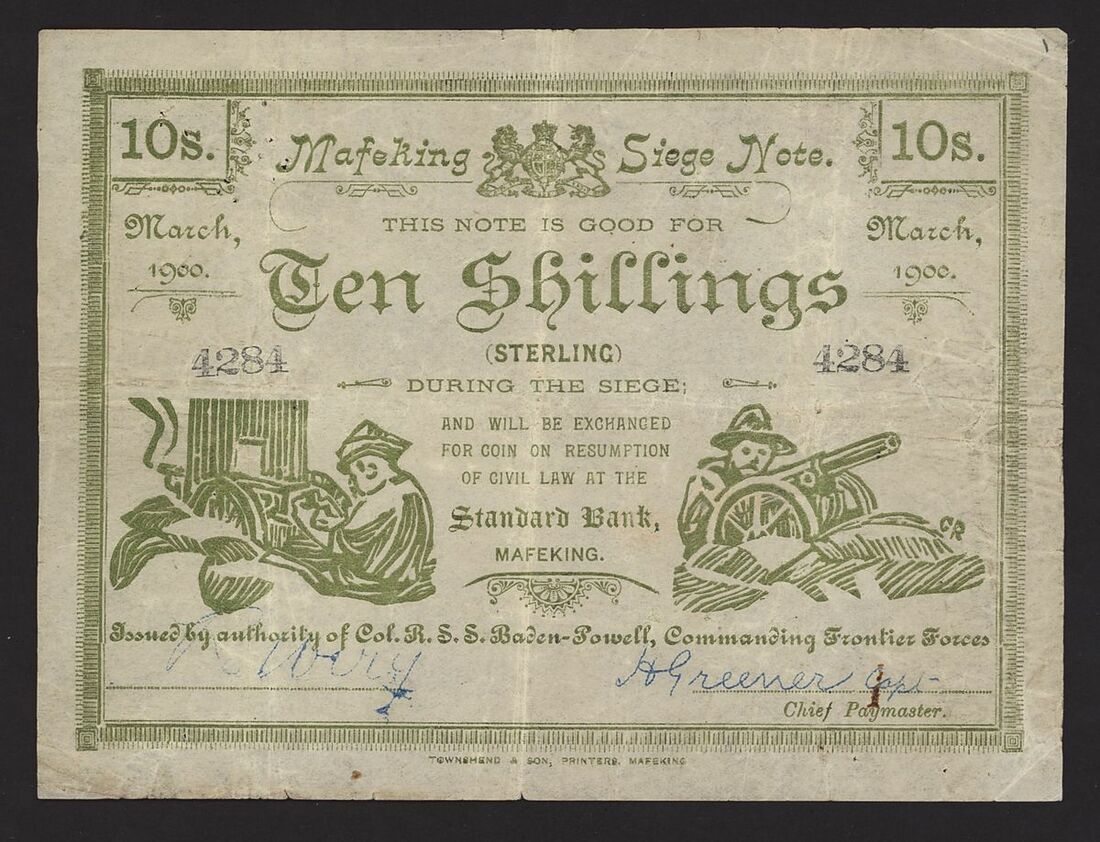 Mafeking Siege / Boer War, South Africa, 10 shillings, March 1900, serial number 4284, (Pick S654b), fine