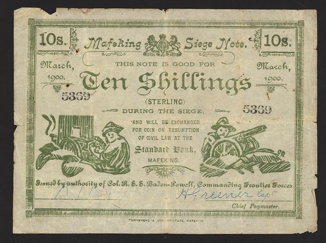 Mafeking Seige, Boer War, South Africa, 10 shillings, March 1900, serial number 5369, (Pick S654b), very good