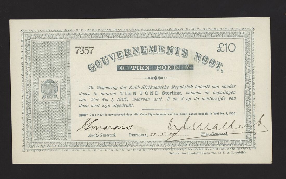 Gouvernements Noot, South Africa, £10, 1900, serial number 7357, (Pick 56b), about uncirculated