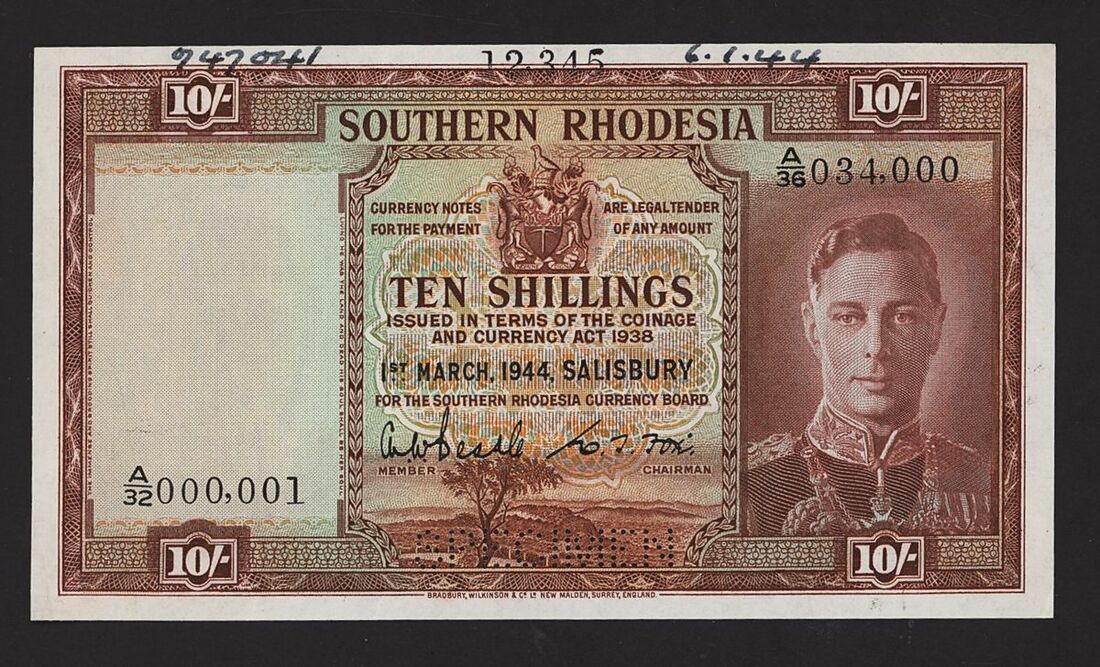 Southern Rhodesia, order specimen 10/-, 1st March 1944, serial number A/32 000,001-034,000, (Pick 9s, BNB103s), about extremely fine, scarce