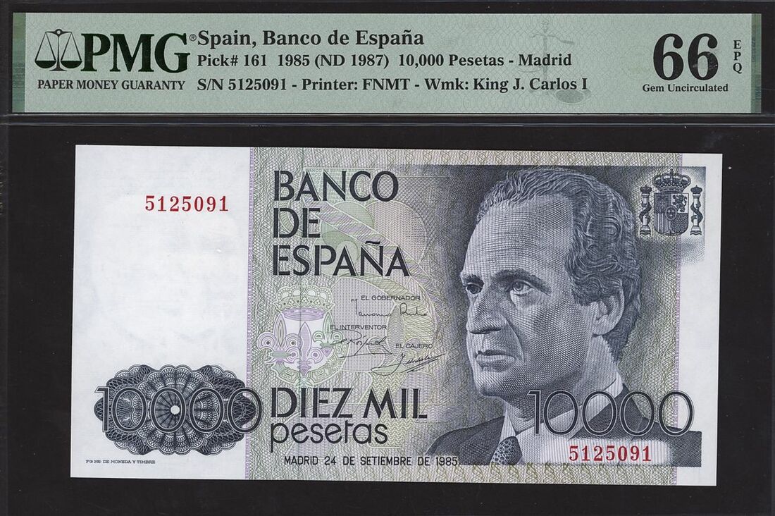 (x) Spain, Group of 6 banknotes, Banco de Espana (5) and Ministry of Finance (1), 10.000 Pesetas 1985 (ND 1987), serial number 5125091,