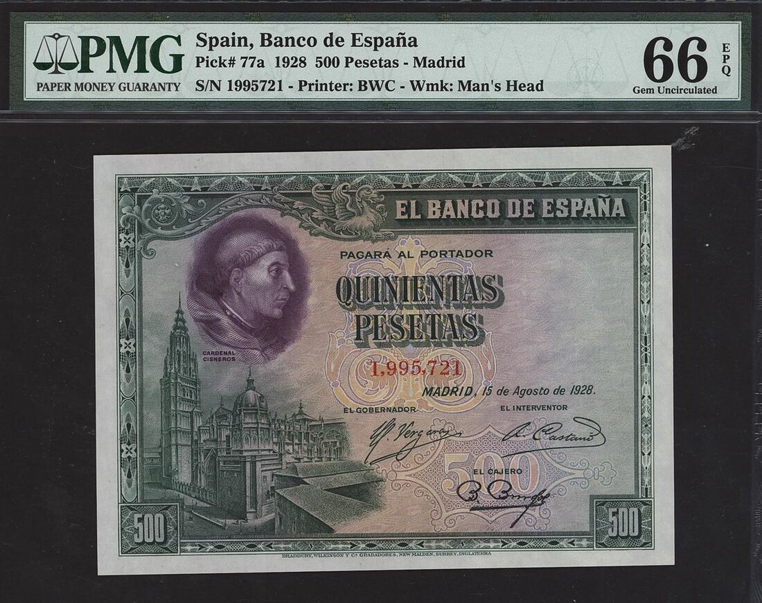 500 Pesetas, 15th August 1928, serial number 1995721,