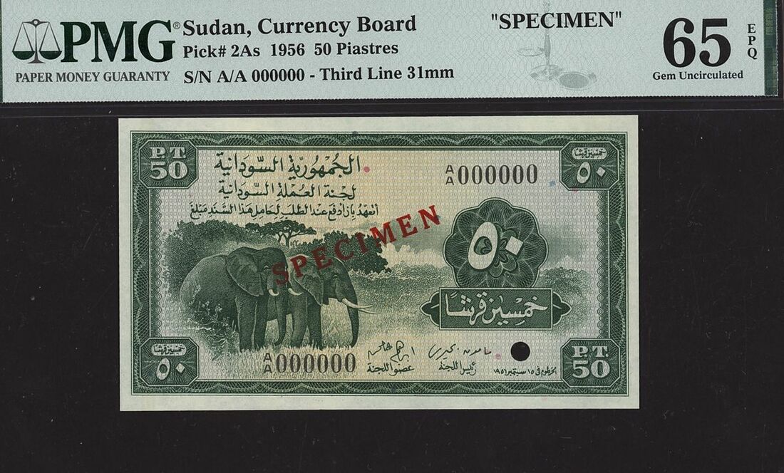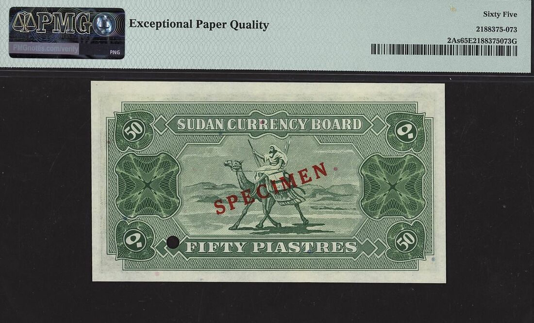 (x) Currency Board, Sudan, specimen 50 Piastres, 1956, serial number A/A 000000, (Pick 2As, BNB 207), in PMG holder 65 EPQ Gem Uncirculated