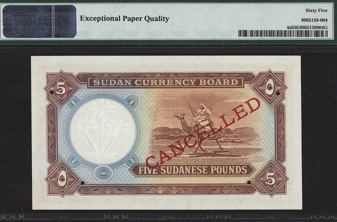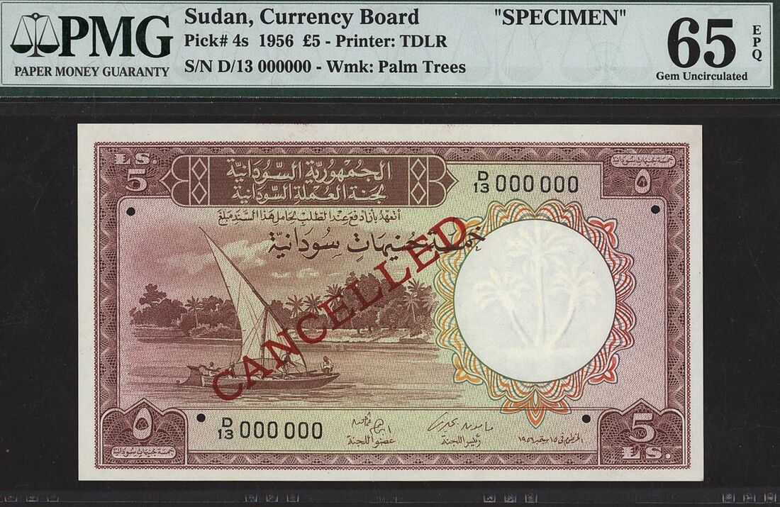 (x) Sudan, Currency board, specimen £5, 1956, serial number D/13 000000, (Pick 4s, BNB 209), in PMG holder 65 EPQ Gem Uncirculated, 4 notes in a higher grade on PMG Census