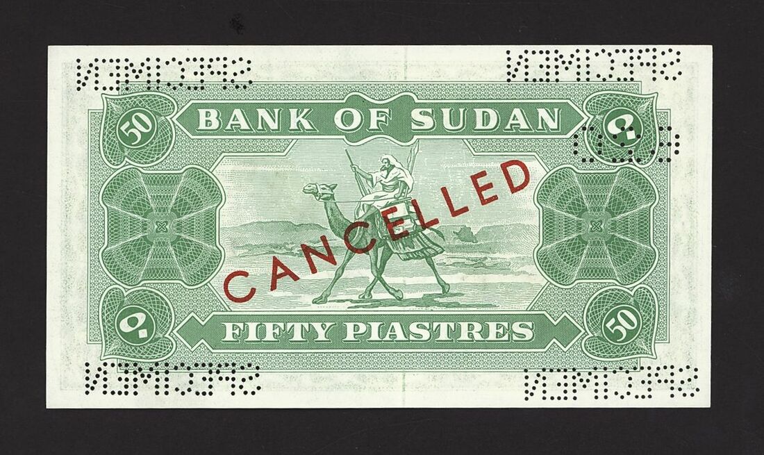 Bank of Sudan, cancelled specimen 50 piastres, 1967, serial number B/00 0000000 620, (Pick 7bs), about uncirculated