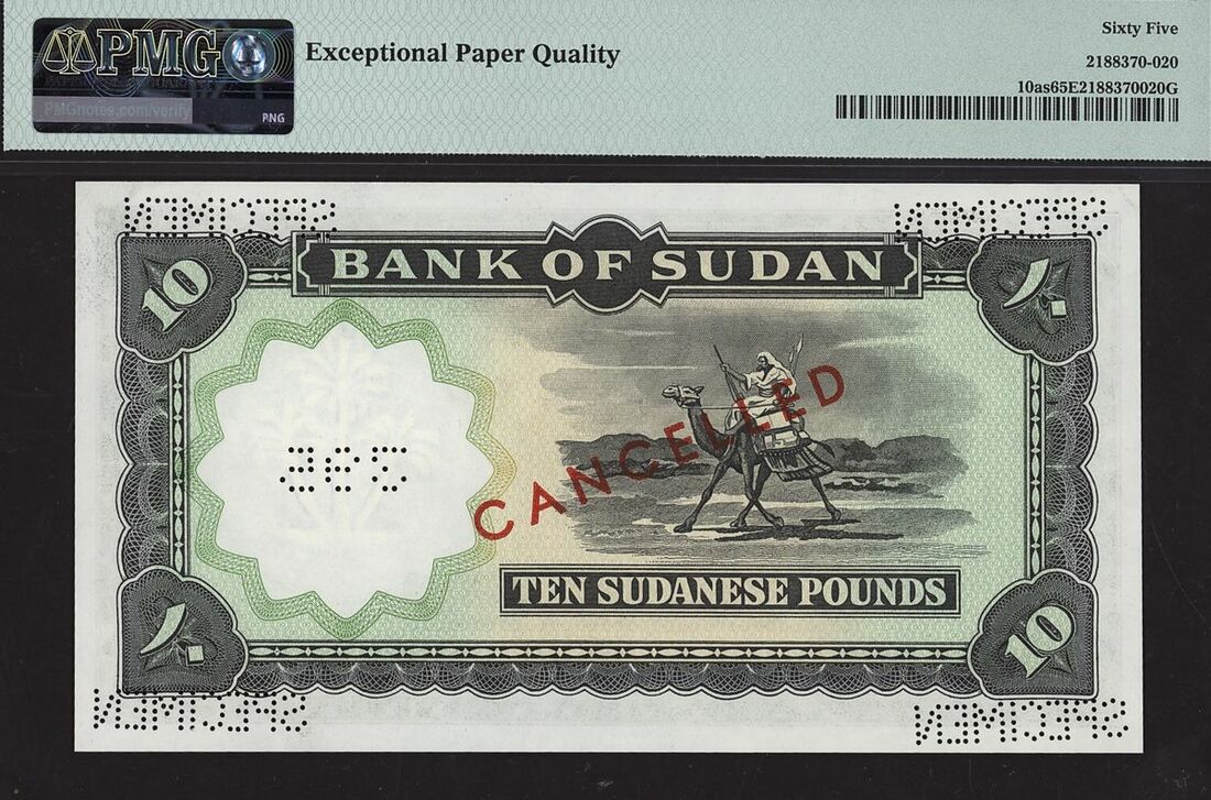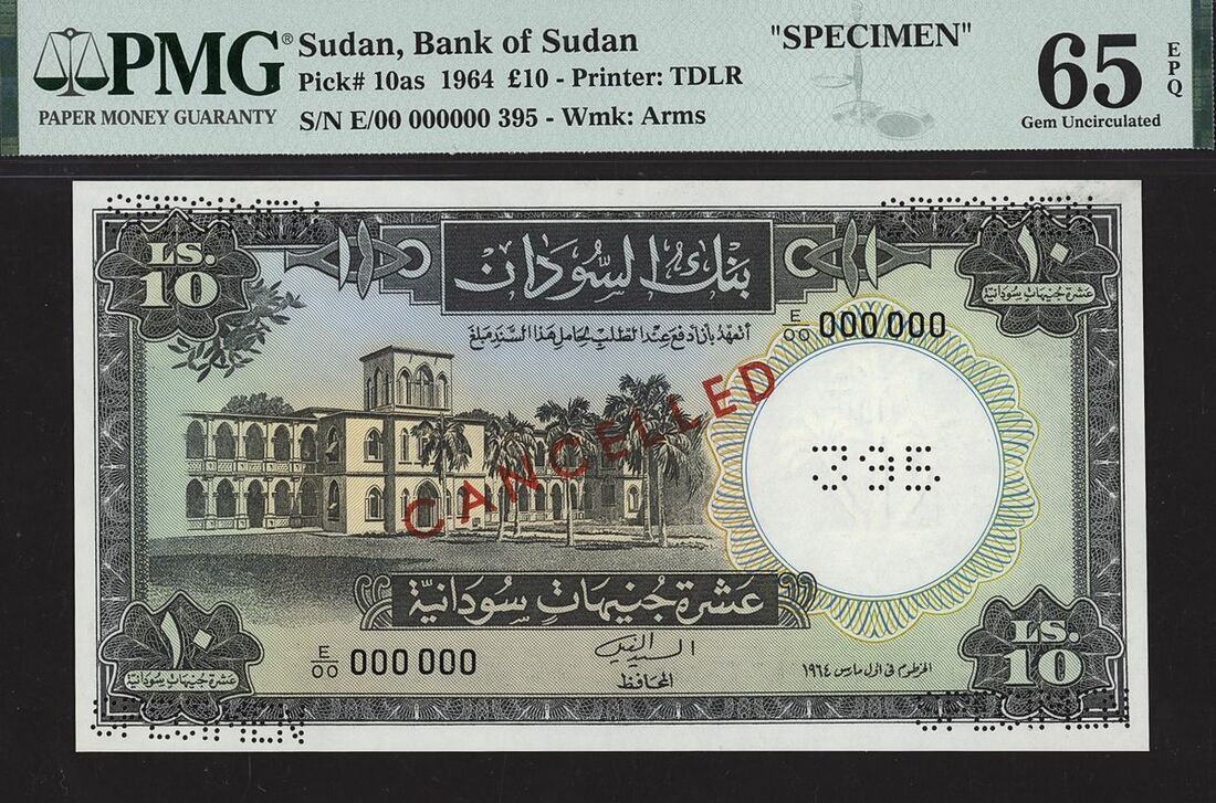 (x) Bank of Sudan, specimen £10, 1964, serial number E/00 000000 395, (Pick 10as, BNB 305), in PMG holder 65 EPQ Gem Uncirculated