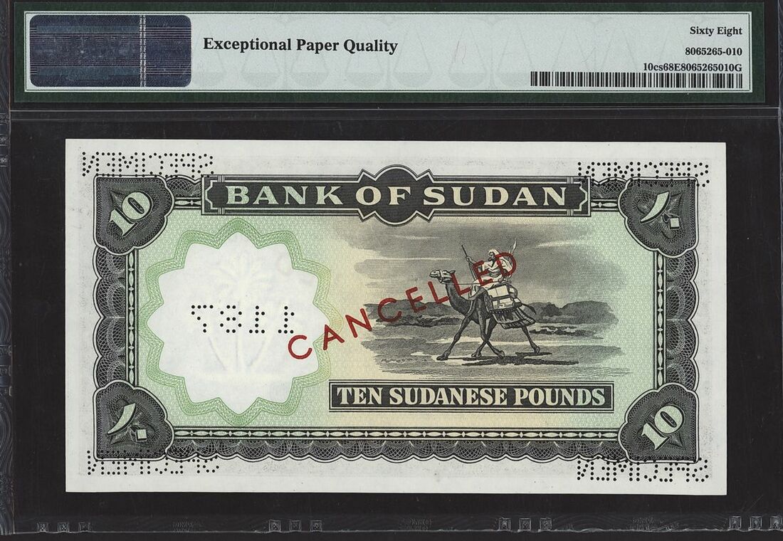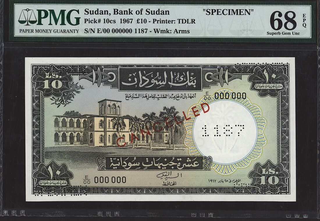 (x) Bank of Sudan, [Top Pop] specimen £10, 1967, serial number E/00 000000 1187, (Pick 10cs, BNB 305), in PMG holder 68 EPQ Superb Gem Uncirculated (0 finer)