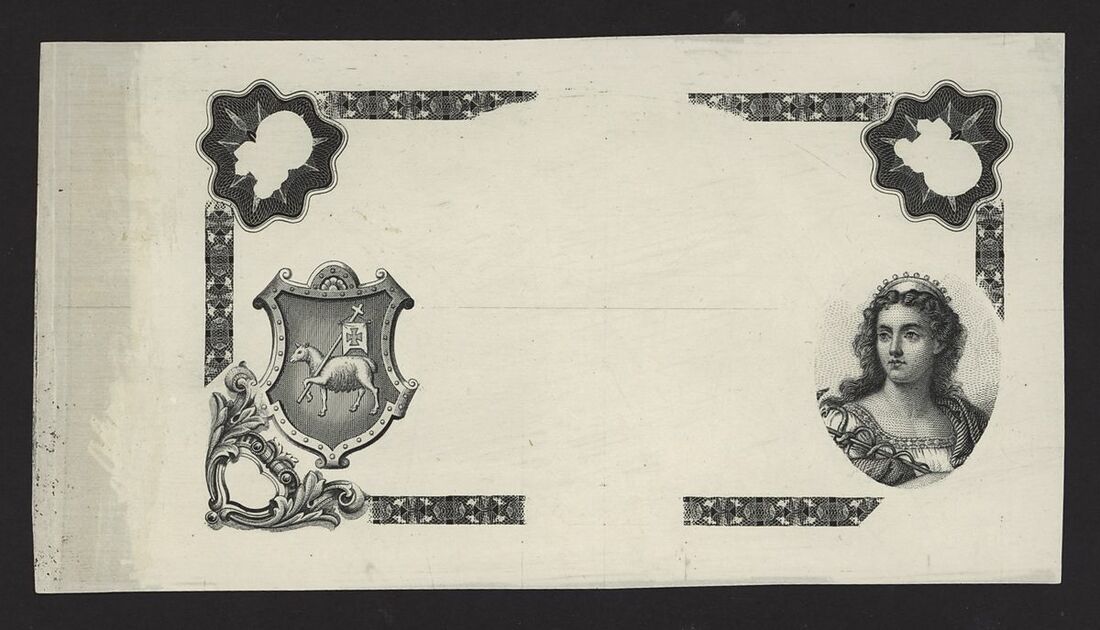 Gotlands Enskilda Bank, Sweden a partial obverse die proof 10 kronor, ND (1893), black and white, arms at left, maiden with diadem at right
