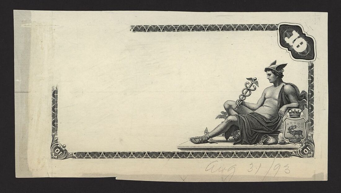 Norrbottens Enskilda Bank, Sweden, obverse proof vignette, 10 kronor, ND 1893, flying Mercury at right