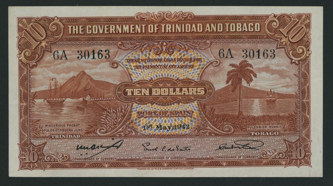 Government of Trinidad and Tobago, 10 dollars, 1st May 1942, serial number 6A 30163, (Pick 9b, BNB 110b), extremely fine