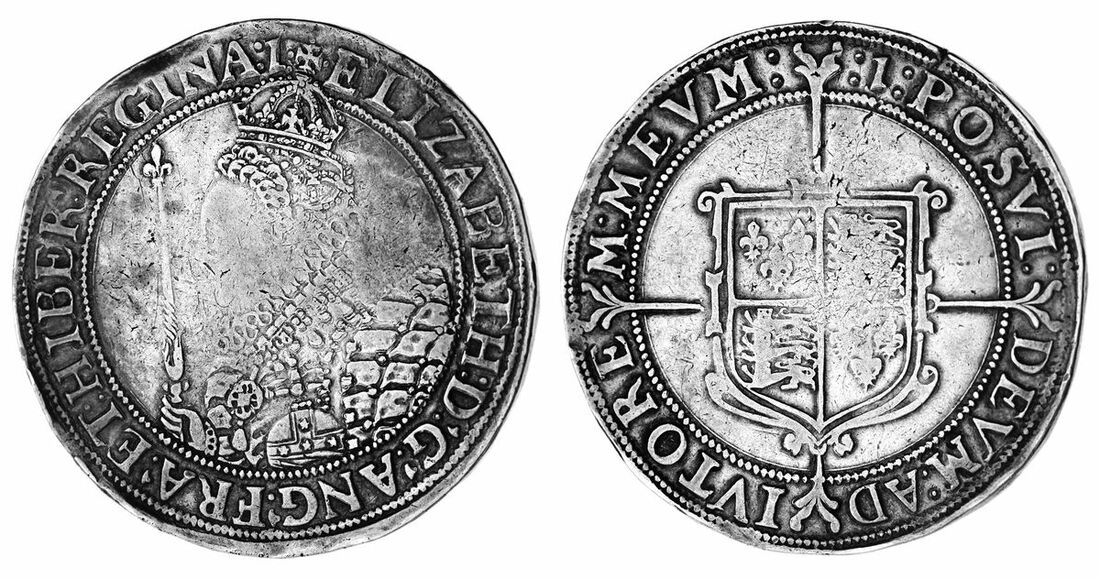 (x) Elizabeth I (1558-1603), Seventh Issue, Crown, 1601, Tower, ELIZABETH : D .' G .' ANG .' FRA ,' ET : HIBER .' REGINA : (m.m) :, crowned bust left, wearing decorated dress and wide ruff, holding orb and sceptre, rev. : (m.m.) : POSVI : DEVM : ADIVTORE M : MEVM :, lightly garnished square-topped shield over long cross fourchée, 29.758g, 10h, m.m. 1 (North 2013; Spink 2582), some faint metal stressing to the fields and mostly flat to the central devices, otherwise better in the legends and with a pleasing grey tone, very fine, better in parts, scarce and always desirable to type collectors
