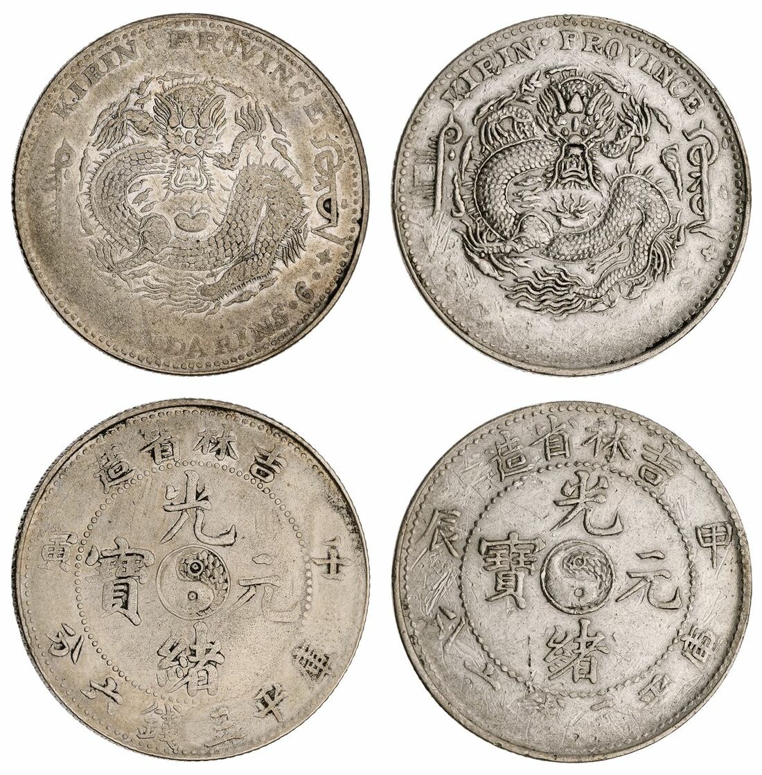 China, Kirin Province, 50 Cents of 3 Mace 6 Candareens, 1902, legend, rev. Imperial dragon facing, milled edge 12.90g (L&M 553; KM Y182A.1), heavily cleaned and flat in parts, yet now with some toning, with NGC Certification (Cert. #6674405-001); another, 50 Cents of 3 Mace 6 Candareens, 1904, legend, rev. Imperial dragon facing, milled edge, 12.87g (L&M 553; KM Y182A.1), harshly cleaned and contact marked, yet bolder fine, with NGC Certification (Cert. #6674405-002) (2)