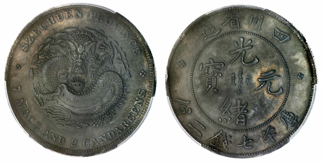China, Szechuan, Kuang-hsü (1875-1908), Dollar of 7 Mace and 2 Candareens, 1901-1908, Kuang-hsu Yuan-pao, rev. flying Imperial dragon facing, milled edge, 12h (L&M 345; KM Y238), with a darkened surfaces, yet with a glimmer of lustre beneath in parts, good very fine, in PCGS holder, graded XF DETAILS, altered surfaces (Cert. #161518.94)