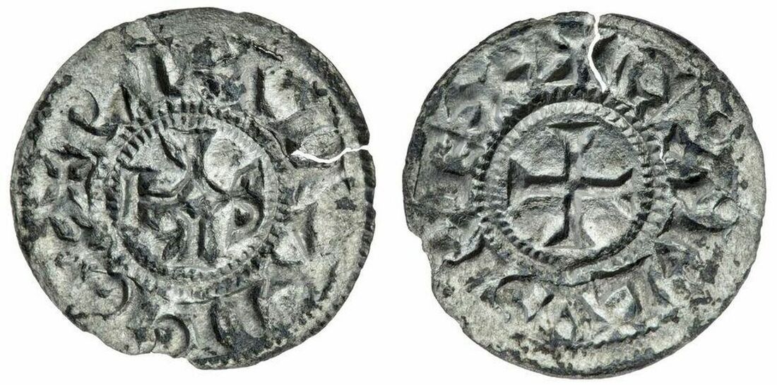 France, Charles III 'the Simple' (c. 883-888), AR Denier, Uncertain Mint, + C.A.RLVS REX, cross pattée, rev. + RIANARIOIOX, Karolus monogram, 0.89g, 6h (Prou -; MG -; Dp 862), crimped and debased with light porosity and creasing and chips to flan, otherwise struck details very fine