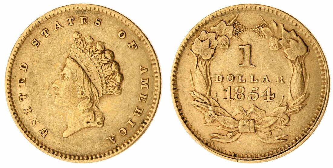 (g) USA, 'Indian Head' Gold Dollar, 1854, $1, Type II, Philadelphia, small 'Indian' head left, rev. value in wreath, milled edge, 6h, 1.65g (Fr 89; KM 83), touch of softness to the central devices, yet with a pleasing tone in the fields, very fine