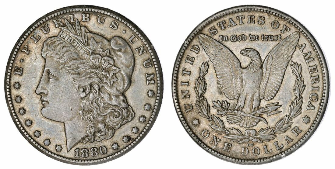 USA, 'Morgan Dollar', 1880 CC, Carson City, Liberty head left, rev. eagle facing left, milled edge, 6h, 26.74g (KM 110), lightly contact marked, nevertheless with a rich cabinet tone to dark grey surfaces and with a residual flash of lustre in the fields, bolder very fine