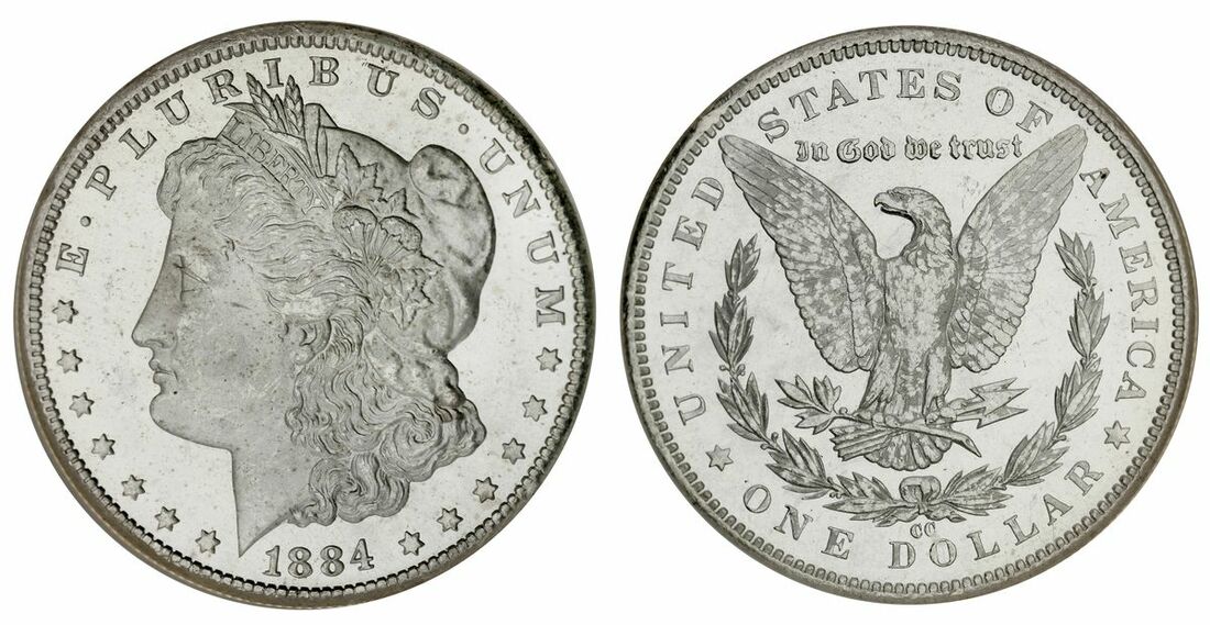 NGC MS64 DPL | USA, 'Morgan' Dollar, 1884 CC $1, Carson City, Liberty head left, rev. eagle, edge milled, 6h (PCGS 97153; KM 110), some light surface marks, otherwise with pleasing proof-like fields, an handsome extremely fine, with an original mintage of 1,136,000 pieces, in NGC holder, graded MS64 DPL (Cert. #289105-010)