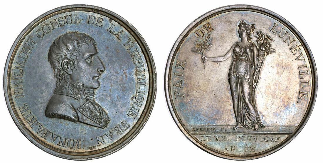 (x) France, Peace of Luneville, AR Medal, 1801, by Andrieu, BONAPARTE PREMIER COLSUL LA REPUBLIQUE FRAN