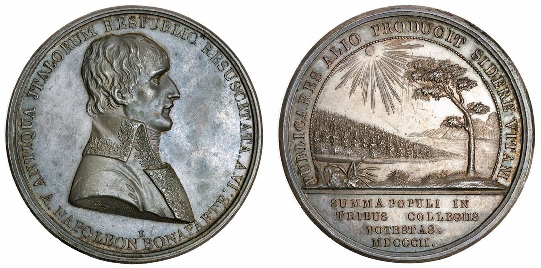 (x) France, Formation of the Italian Republic in Lyon, AR Medal, 1802, by George, ANTIQUA JTALORUM RESPUBLIC