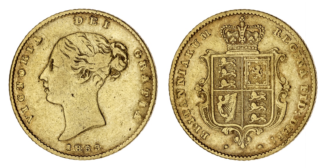 (g) Victoria (1837-1901), 'Shieldback' Half-Sovereign, 1853, Type IA, first small young head left, rev. crowned normal shield, milled edge, 3.92g (EGC 1248; MCE 575; Marsh 427; Spink 3859), cleaned and mostly flat to the hair, faint red tone to the legends, bold fine