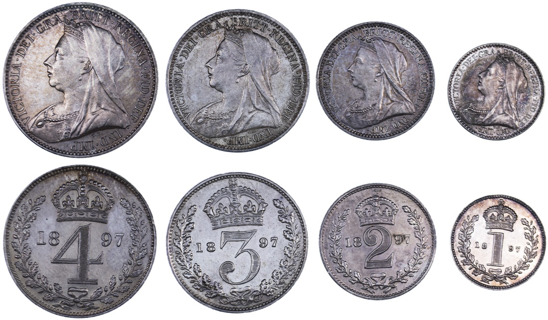 (x) Victoria (1837-1901), 'Diamond' Jubilee Maundy Set, 1897, veiled head left, rev. crowned mark of value, edges plain (Bull 3555; ESC 2512; Spink 3943), some minor hairlines, otherwise lustrous, good extremely fine