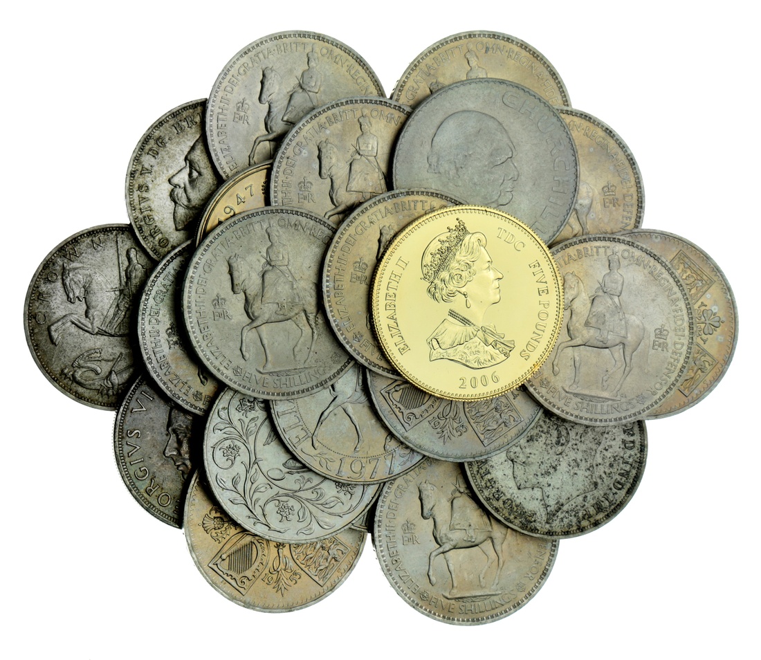Collection of Crowns (35) | George V (1910-1936), 'Rocking Horse' Crown, 1935 (4), all with dark speckled toning in parts, yet lustrous, very fine to extremely fine; George VI (1936-1952), 'Coronation' Crown, 1937, toned, very fine; Elizabeth II (1952-2022), 'Coronation' Crown, 1953 (16), some lightly contact marked, yet all lustrous, mostly extremely fine; 'Churchill' Crown, 1965 (2), as struck; 1977 (4), lustrous, extremely fine; 1980, lustrous, extremely fine; 1981, contact marked, yet lustrous, extremely fine; 1997, lustrous, extremely fine; Silver-Gilt Crown, 2006, brilliant, as struck; Jersey, Elizabeth II (1952-2022), Crown, 1966, bagmarked yet toned, extremely fine; Gibraltar, Elizabeth II (1952-2022), Crown, 1967 (2), lustrous, extremely fine (35)