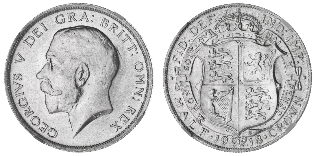 NGC MS64 | George V (1910-1936), Halfcrown, 1918, bare head left, rev. crowned shield within Garter, edge milled, 14.14g*, 12h (ESC 766; Bull 3718; Spink 4011), some very faint cabinet fiction to the obverse, otherwise with lustrous and mint surfaces, practically as struck, in NGC holder, graded MS64 (Cert. #6296885-005)