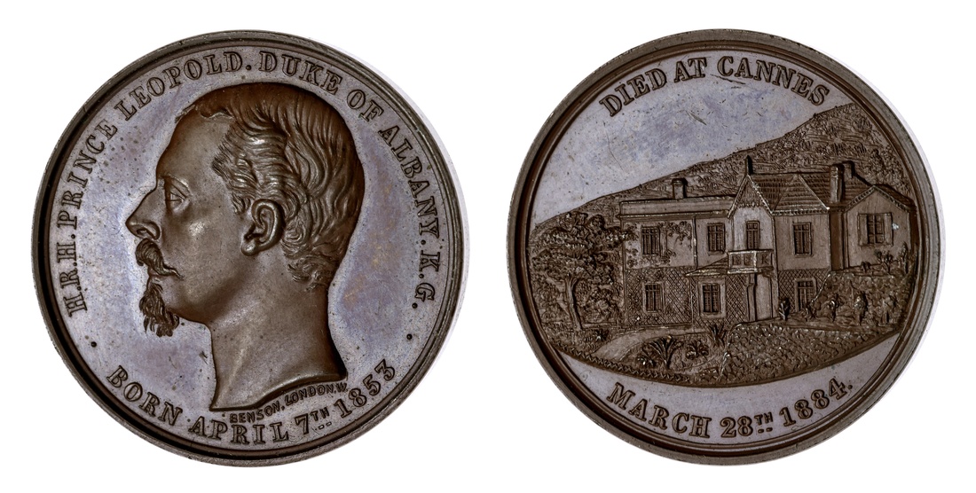 Death of the Duke of Albany, AE Medal, 1884, by J. Benson, H.R.H. PRINCE LEOPOLD. DUKE OF ALBANY. K.G. BORN APRIL 7