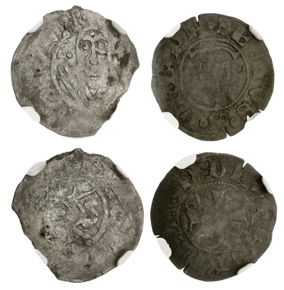 France, Robert II (972-1031), Denier, portrait facing, rev. portrait of Bishop facing, 0.95g (Roberts 2382), chipped and mostly flat to the legends and illegible, portrait of the king fine, otherwise fair, in NGC holder, graded VF DETAILS, ENVIRONMENTAL DAMAGE (Cert. #6356325-003); Urban VI (1378-1389), Denier, Avignon, mitre, rev. short cross, keys of St Peter in first and third angles, (Munt 1; B 221), fair, in NGC holder, graded FINE DETAILS, BENT (Cert. #6356328-003) (2)