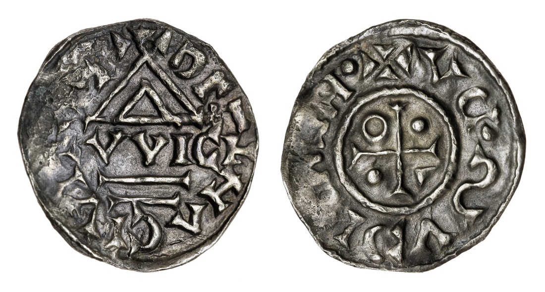 German States, Bavaria, Henry IV (995-1002), Denarius, Regensburg, mint master Vvici, + VCSVVDI[???]H ., rev. short cross, a dot in the first and third angle, wedge in the second, annulet in fourth angle, rev. DL-HV CIVITAS, VVICI within stylistic church, 1.14g, 6h (Hahn 25), crimped, soft in parts of the legend, with a dark tone, about very fine