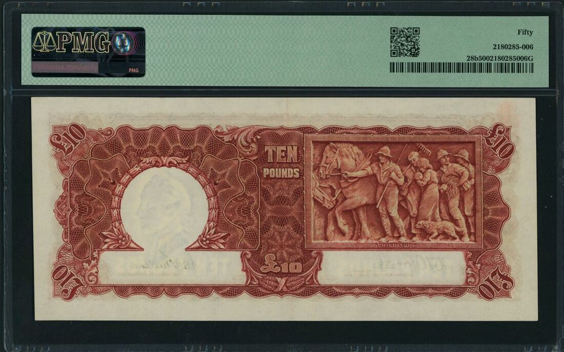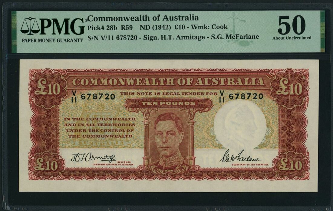 Commonwealth of Australia, £10, ND (1942), serial number V/11 678720, (Pick 28b, BNB 134, R 59), in PMG holder 50 About Uncirculated