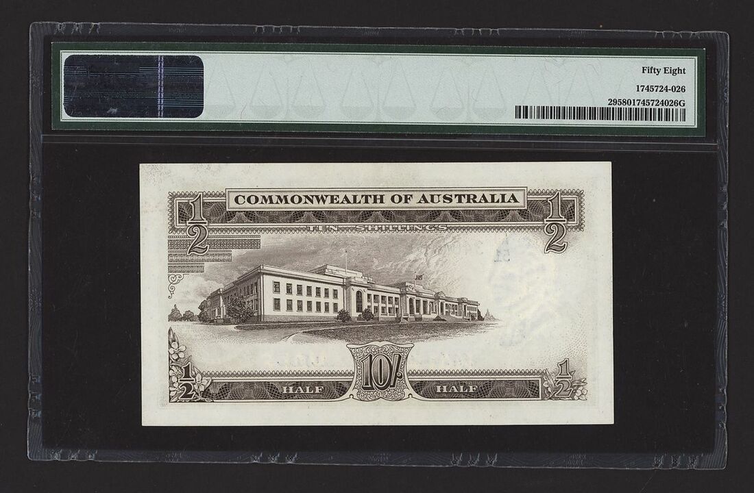 (x) Commonwealth of Australia 10 Shillings, ND (1954-60), serial number AD/51 346473, (Pick 29, BNB 138), in PMG holder 58 Choice About Uncirculated