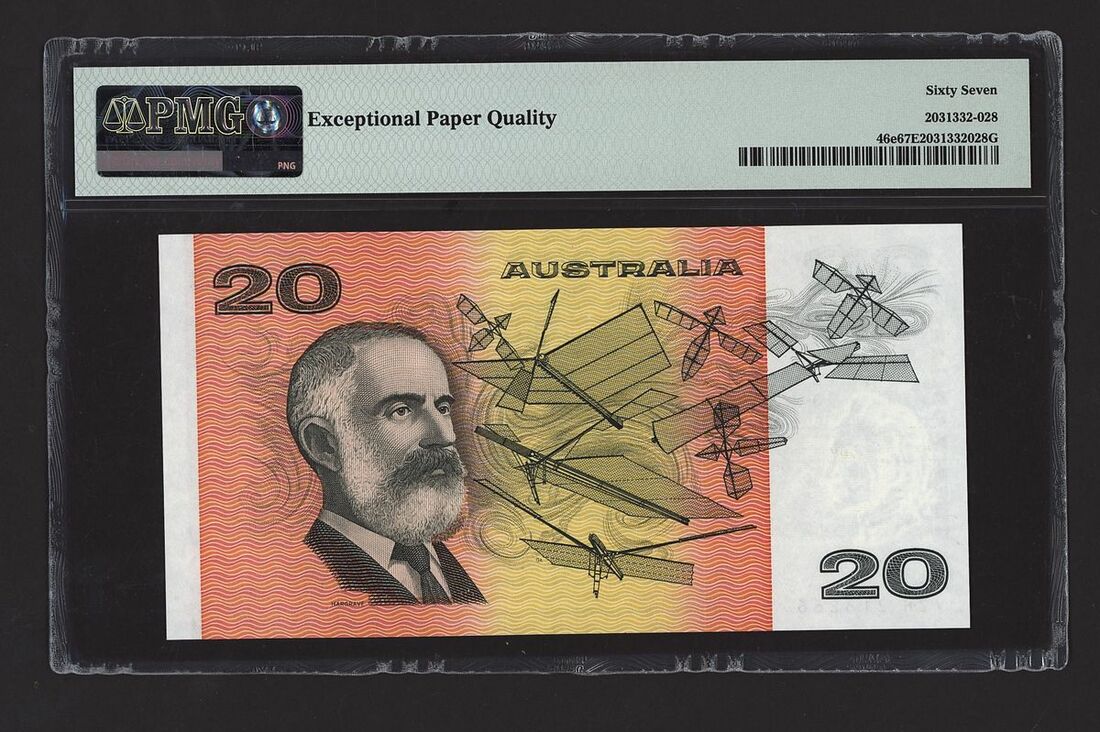 (x) Australia, Reserve Bank, [Top Pop] 20 Dollars, ND (1985), serial number VZH 218266, (Pick 46e, R409, BNB 214), in PMG 67 EPQ Superb Gem Uncirculated