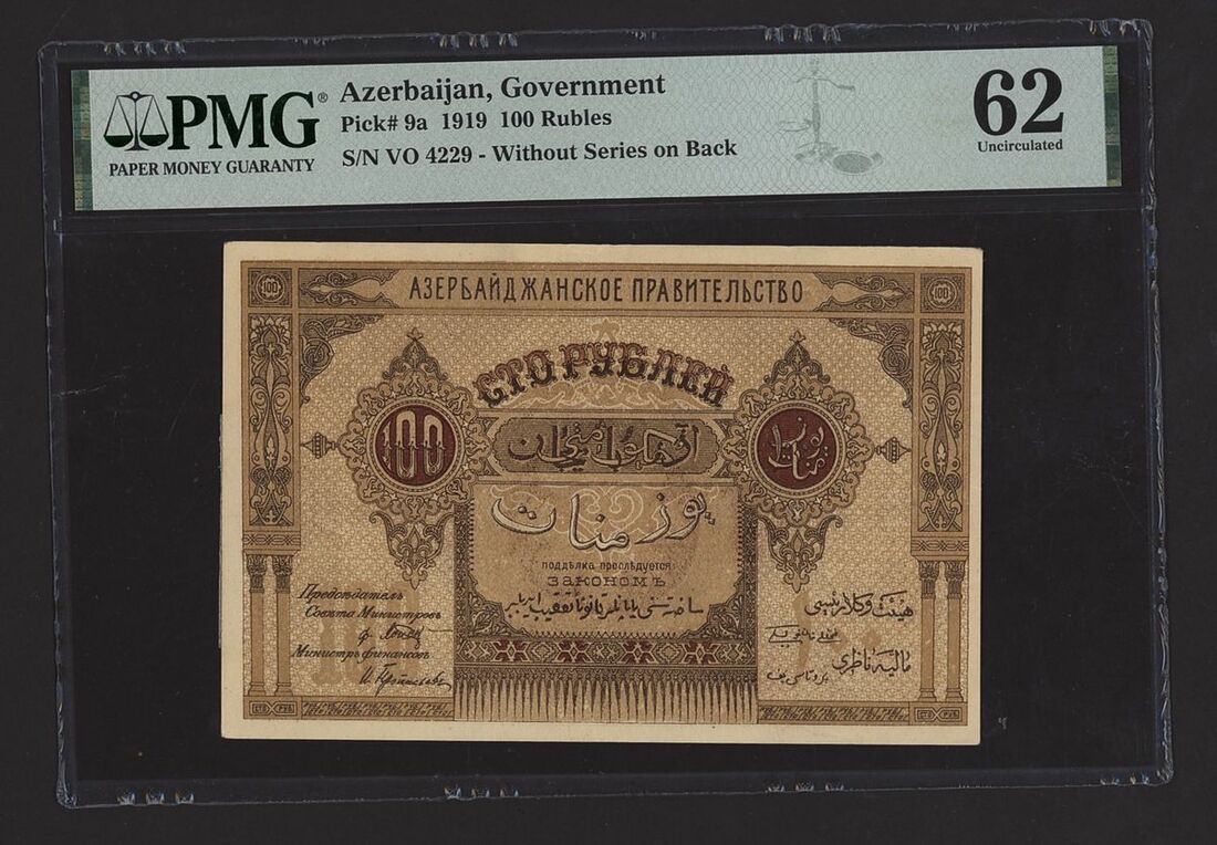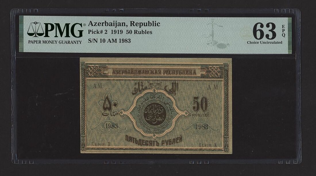 (x) Azerbaijan, [2 notes] 50, 100 Roubles, 1919, Azerbaijan Government, 100 Roubles, 1919, serial number VO 4229, Republic Azerbaijan, 50 Roubles 1919, serial number 10 AM 1983,