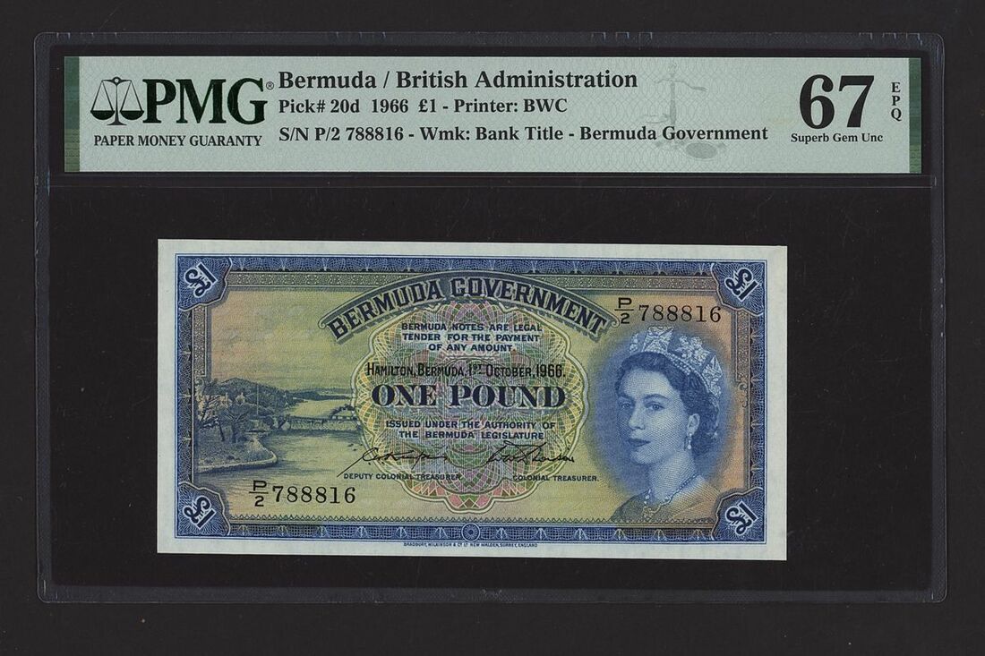 (x) Bermuda, British Administration, £1, 1st October 1966, serial number P/2 788816, (Pick 20d, BNB 121), in PMG holder 67 EPQ Superb Gem Uncirculated