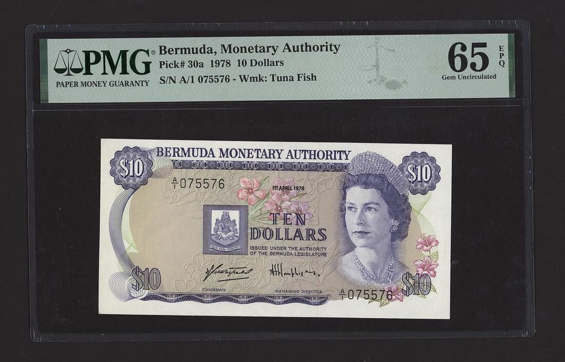 (x) Bermuda, Monetary Authority, 10 Dollars, 1st April 1978, serial number A/1 075576, (Pick 30a, BNB 203), in PMG holder 65 EPQ Gem Uncirculated