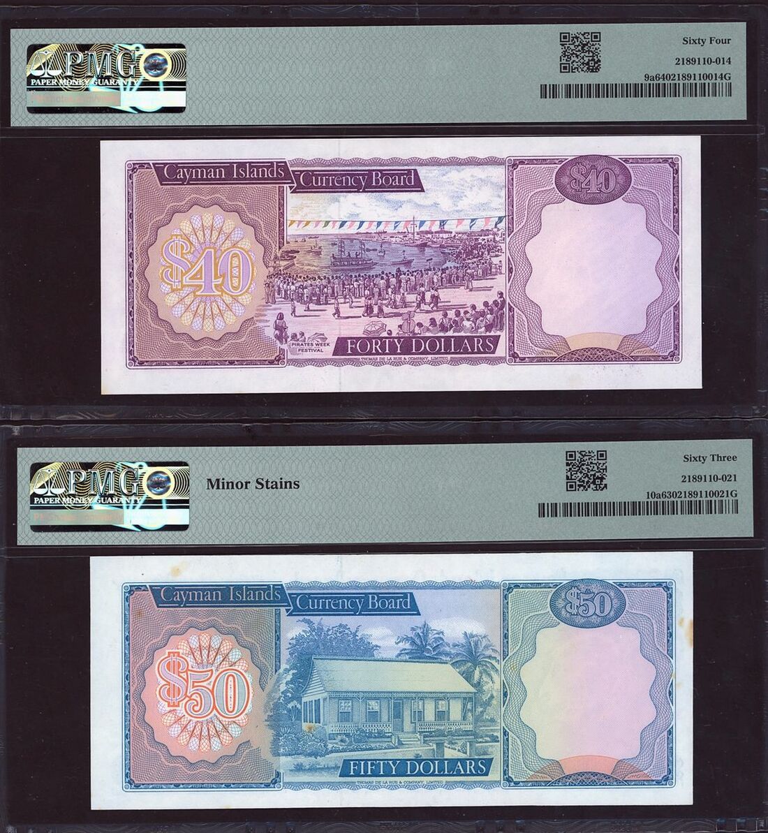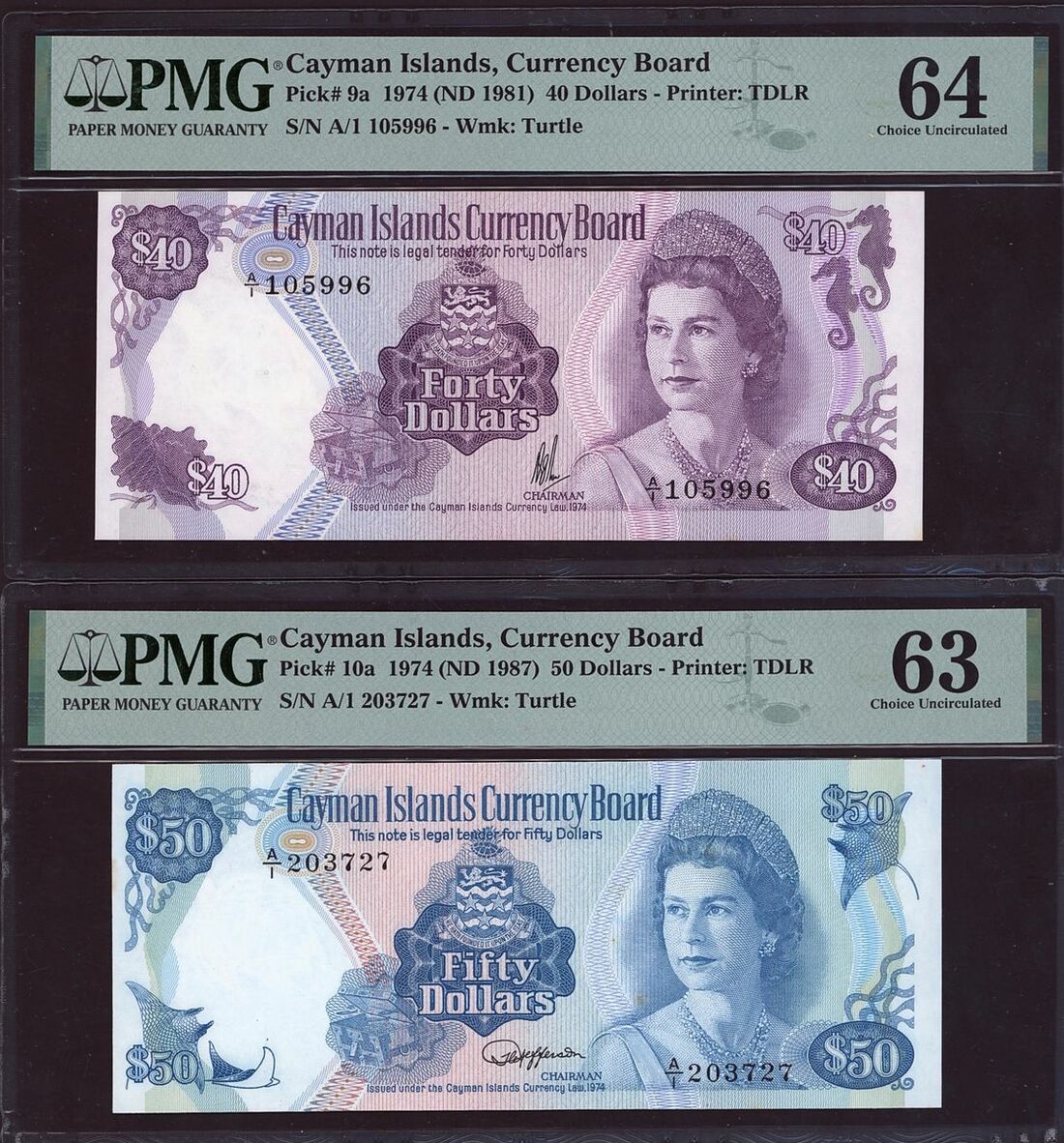 (x) Cayman Islands Currency Board, $40, $50, $100, ND (1981-1987), watermark on all: turtle