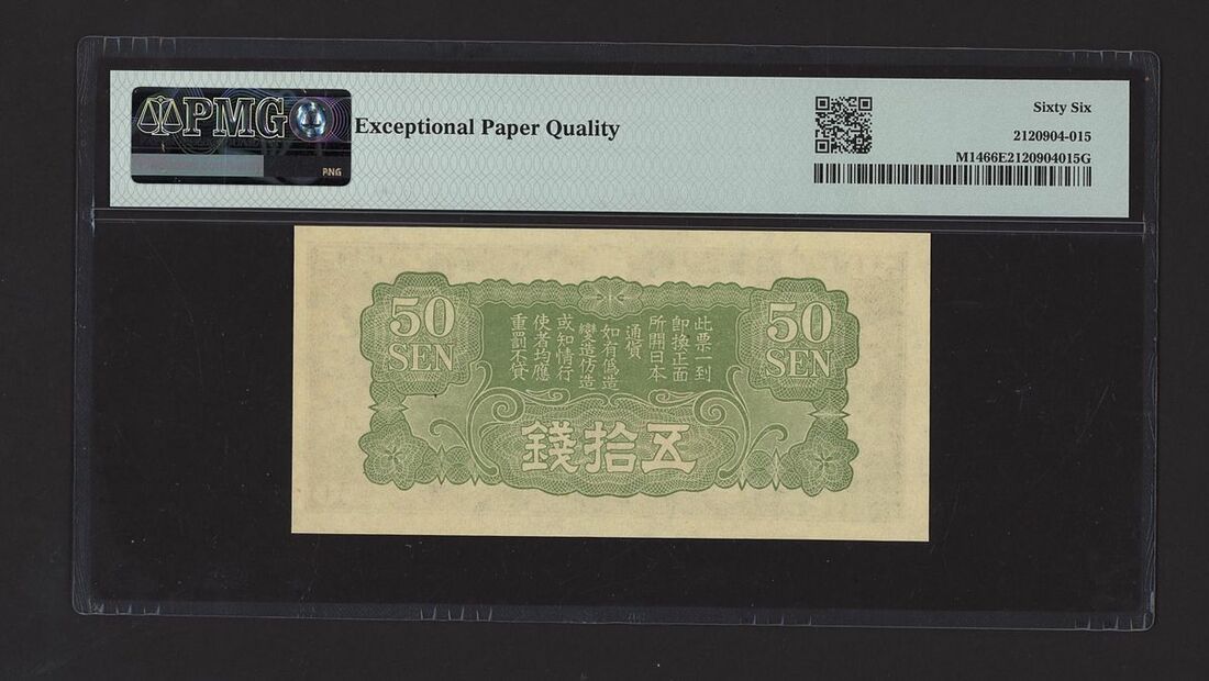 (x) Japanese Military WWII, China, 50 Sen, ND (1938), Title B, (Pick M14 S/M T31-4), in PMG holder 66 EPQ Gem Uncirculated
