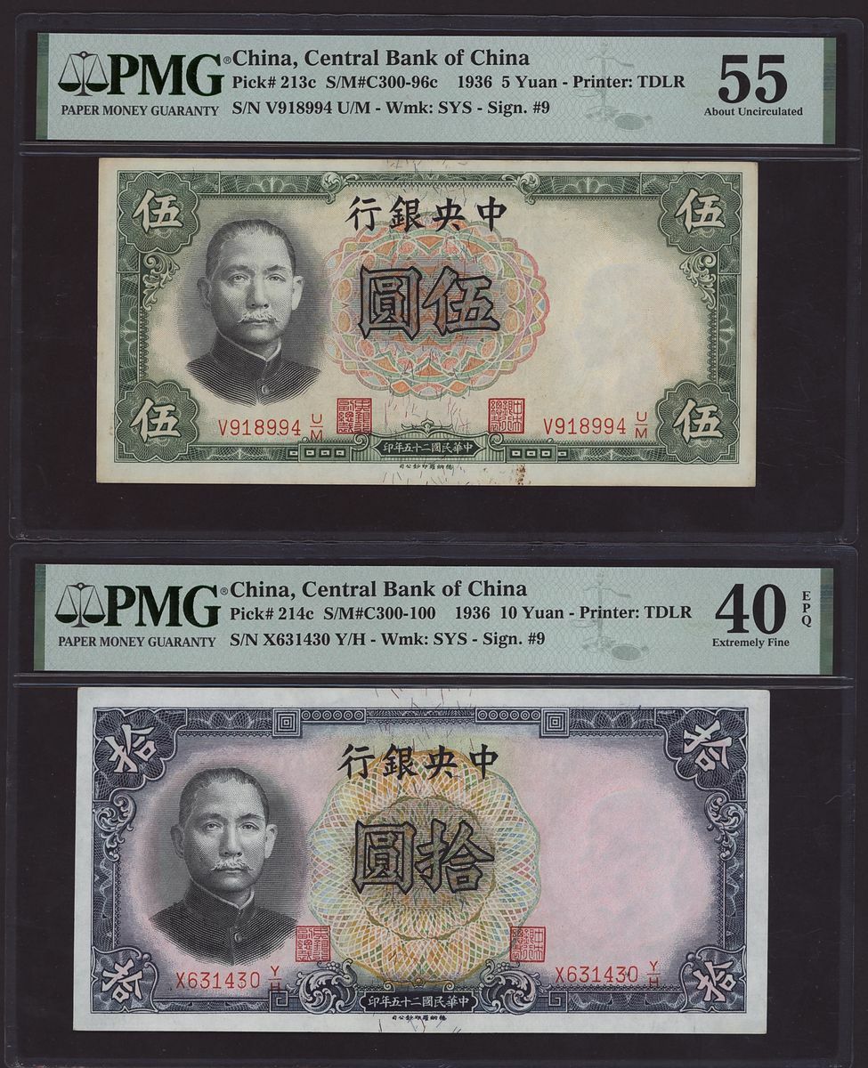 (Pick S2423d, 440, 213c, 214c, 197e, S/M# K56-14d, C304-22, C300-96c, C300-100, C300-42c, BNB x, 3304, 3066, 3067, 3044), in PMG holder 64 Choice Uncirculated (1), 63 Choice Uncirculated, minor stains (1), 58 EPQ Choice About Uncirculated (1), 55 About Uncirculated, minor stains (1), 40 EPQ Extremely Fine (1), (total 5 notes)