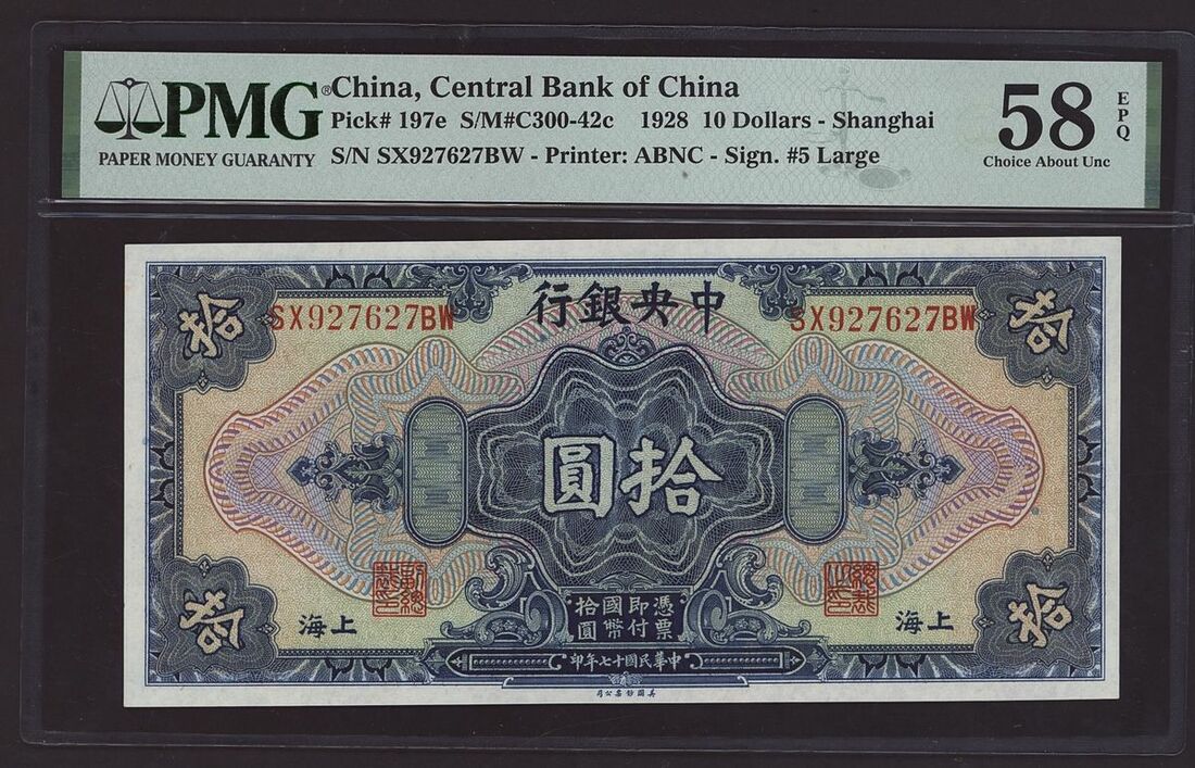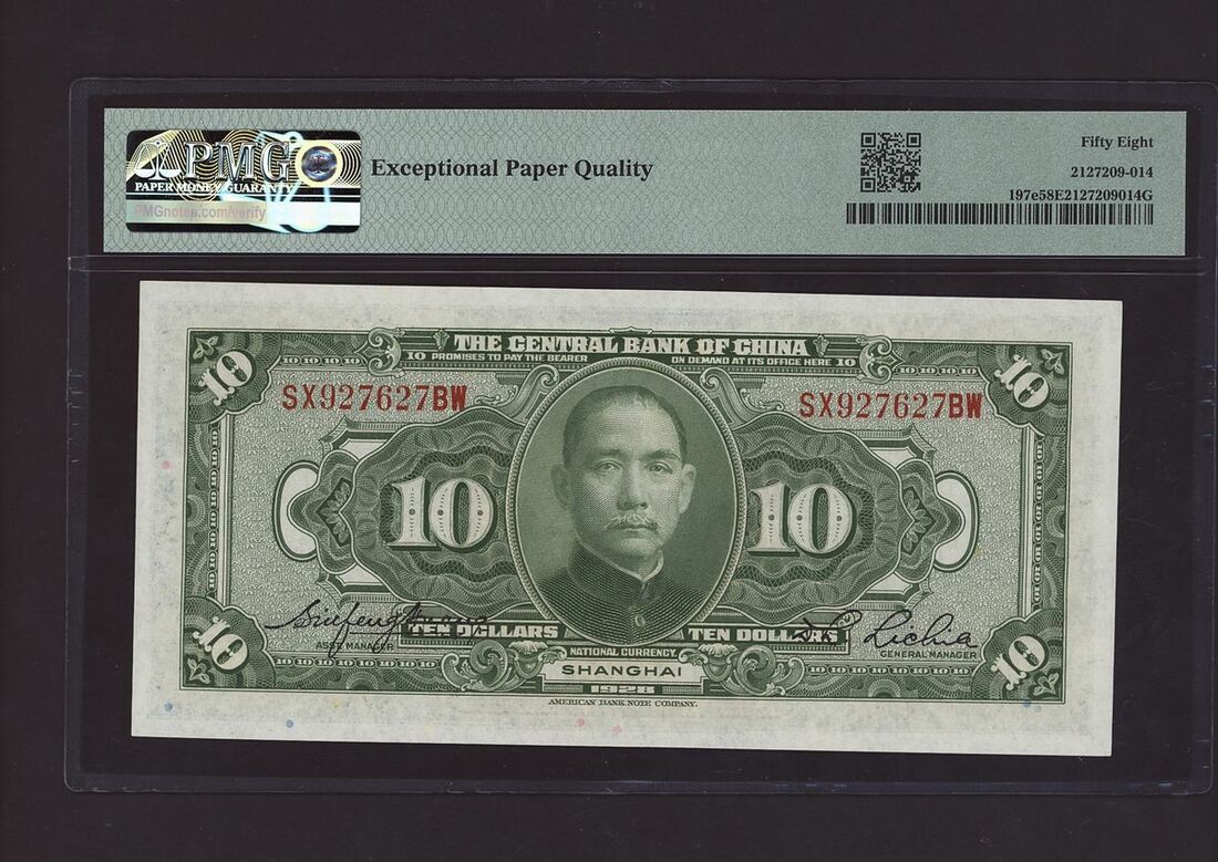 10 Dollars - Shanghai, 1928, serial number SX927627BW,