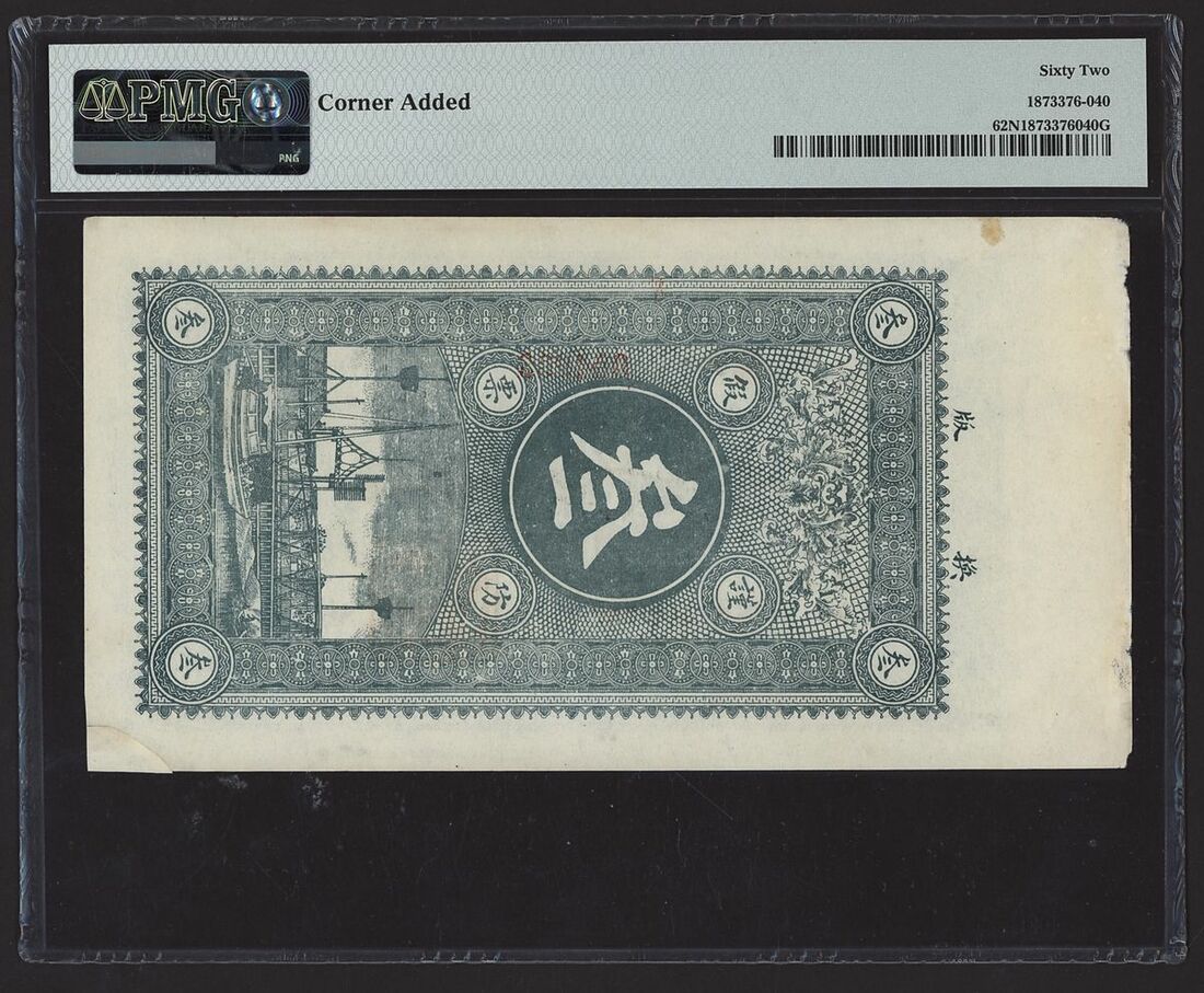(x) Yuan Hsing Bank, China 3 Tiao, 1918, serial number 004996, (Pick Unlisted), in PMG holder 62 NET Uncirculated, corner added