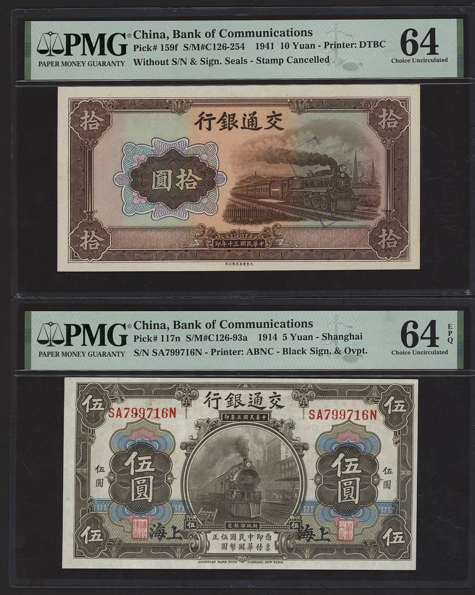 (Pick 159f, 117n, 98, S/M C126-254, C126-93a, C294-270, BNB 1505, 1431, 1178), in PMG holder 64 EPQ Choice Uncirculated (1), 64 Choice Uncirculated (1), 25 Very Fine (1), (3 notes)