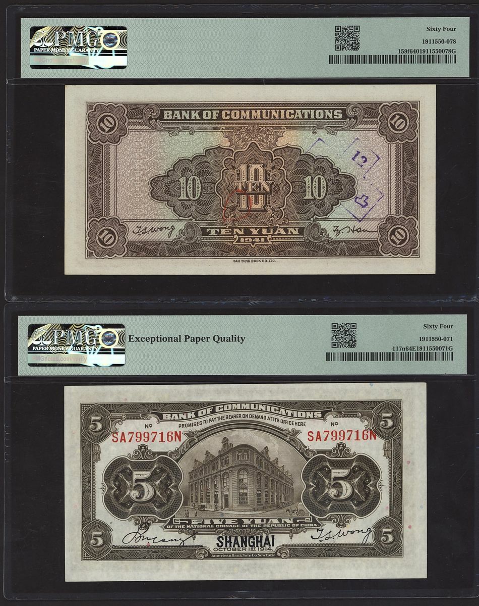 5 Yuan, Shanghai, 1914, serial number SA799716N,