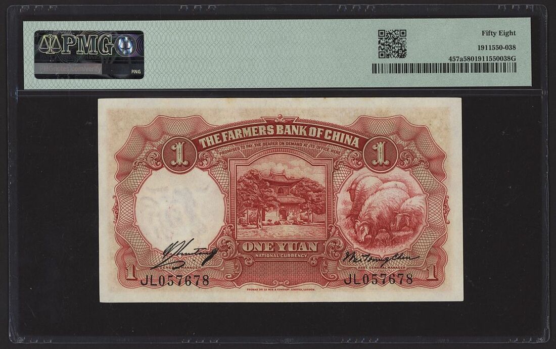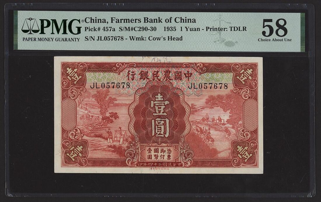 (x) Farmers Bank of China, 1 Yuan, 1935, serial number JL057678, (Pick 457a, S/M#C290-30, BNB 3809), in PMG holder 58 Choice About Uncirculated