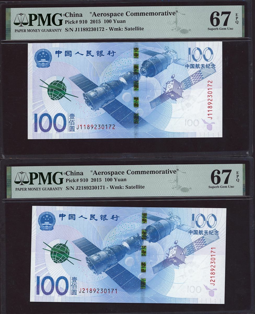 (x) China, nine assorted notes, yuan and chaio notes, 1935-2015, one 1 yuan, two 10 yuan, two 100 yuan, one 1 chiao, one 5 chiao, two 10 yuan
