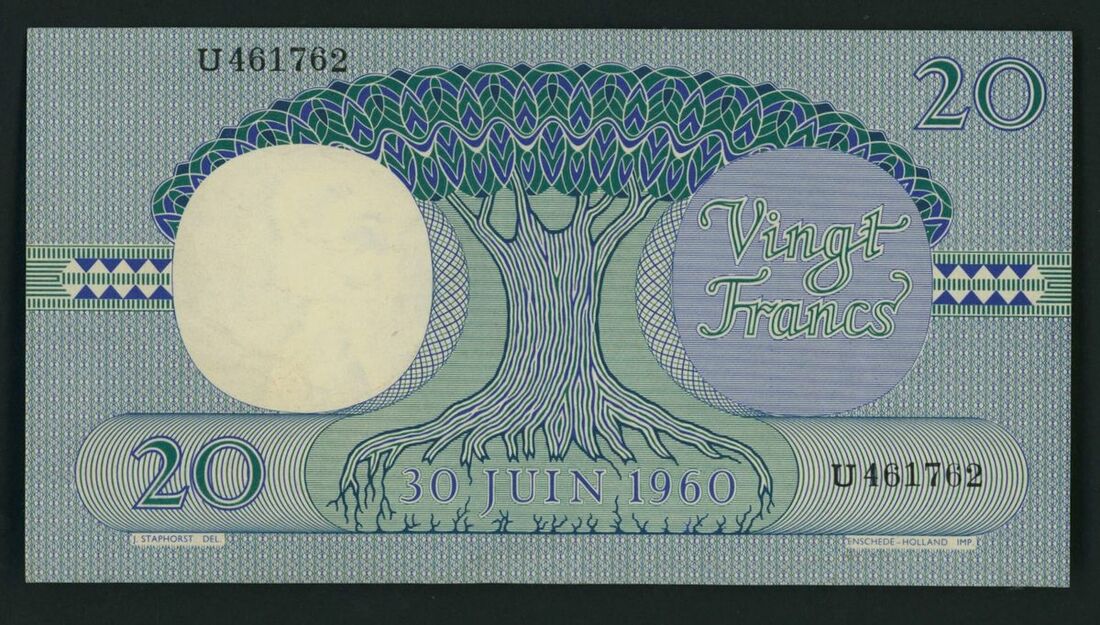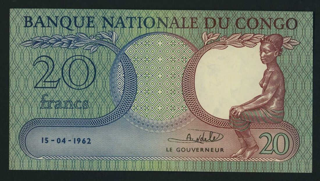 Congo Democratic Republic, Banque Nationale du Congo, 20 francs, 15th April 1962, serial number U461762, (Pick 4a, BNB 201e), About Uncirculated