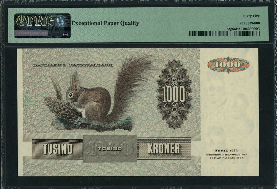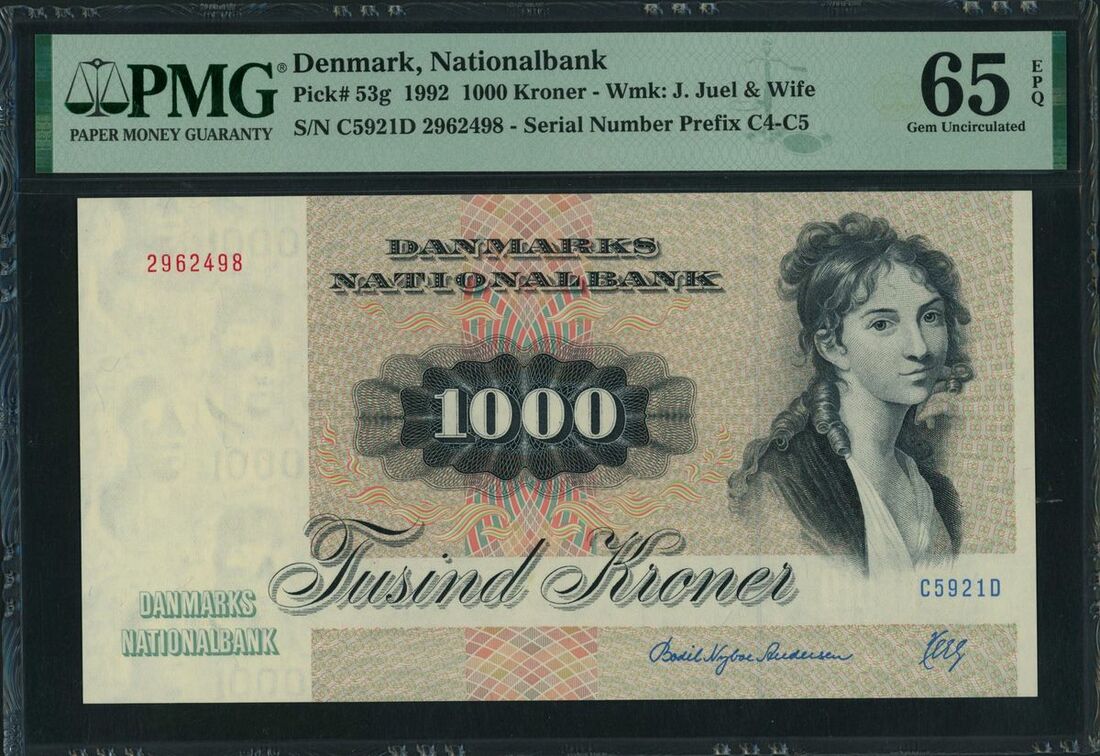 Denmark, National Bank, 1000 kroner, 1992, serial number C5921D, (Pick 53g, BNB 924f), in PMG holder 65EPQ Gem Uncirculated